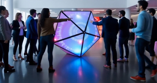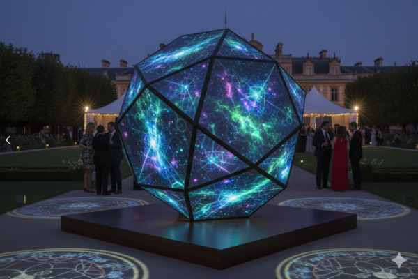 Az eszköz falait világító fényeffekteket a körülötte állók vezérlik mosolyuk intenzitásával, amellyel egyszerre varázsolnak meditatív, futurisztikus és felemelő atmoszférát.
